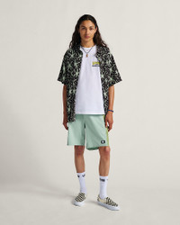Style VN000M8GEMW A new take on the boardshorts of old, the Daily Sideline 18'' Boardshorts are made using 90% recycled polyester with 4-way stretch so you have all the room you need to move in the surf, or on the sand. A subtle colorway, woven flag label and VR3 icon details call out Vans® heritage. Details - 4-way stretch construction for comfort and flexibility - Back pocket for secure storage - Contrasting sideline print for visual interest - Woven patch at side seam - VR3 icon details - 90% recycled polyester, 10% elastane