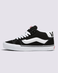Style VN000CQ96BT From the unapologetic spirit of the Knu Skool, the Knu Mid takes ‘90s skate style to the next level with a mid-top profile, oversized laces, puffy tongue, and plush collar. Finished with a chunky 3D Sidestripe, embossed heel logo, and Vans’ signature waffle sole, it’s heritage reimagined—higher and louder. Details - 90s-inspired mid-top shoe - Suede upper for a soft, textured finish - Oversized tongue and padded collar for extra comfort - Wide laces for bold style and adjustable, secure fit - Heel pulls for ease of entry - Puffy 3D Sidestripe™ blends throwback style with a modern edge - Rubber sidewall with classic foxing stripe - Signature waffle outsole pattern for reliable grip since '66 - Vulcanized build for the original look and feel