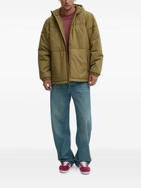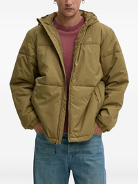 logo-embroidered padded jacket Highlights - Olive green - Quilted design - Classic hood - Front zip fastening - Long sleeves - Side zip-fastening pockets Imported Composition Polyester 100% Washing instructions Read Manufacturer Guidelines