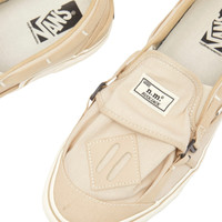 Part of a second collaboration with Nicole McLaughlin, these Vans slip on sneakers are inspired by vintage camping backpacks. Made with a canvas upper, faux leather overlays add durability before a DWR coating provides water repellency. With a unique rucksack inspired toe box pocket, a lugged outsole provides traction. - Canvas Upper - Faux Leather Overlays - Slip On - Vulcanised Midsole - Lugged Outsole