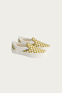 Laid-back legacy, refreshed in blue. The LX Classic Slip-On 98 in Checkerboard Burnt Gold brings calm to the chaos with a tonal update to Vans’ most iconic print. Under the hood, you’ve got all the Vault upgrades: premium canvas, a cushy footbed, and that high-gloss foxing tape that gives a little structure to the soft lines. Elastic side panels and padded collars make for easy-on, easy-off wear -- the kind you end up reaching for whether you’re heading out or staying in. Style it with light chinos and an oversized oxford for an easy summer uniform, or go full tonal with linen pants and a washed tee in a similar blue hue. - Premium canvas upper in Checkerboard Burnt Gold - Vault LX construction with upgraded comfort and detailing - Classic Slip-On silhouette with padded collar and elastic side accents - Vulcanized rubber waffle outsole - A soft-spoken twist on a bold classic Fits true to size. Sizing is in US Men's.