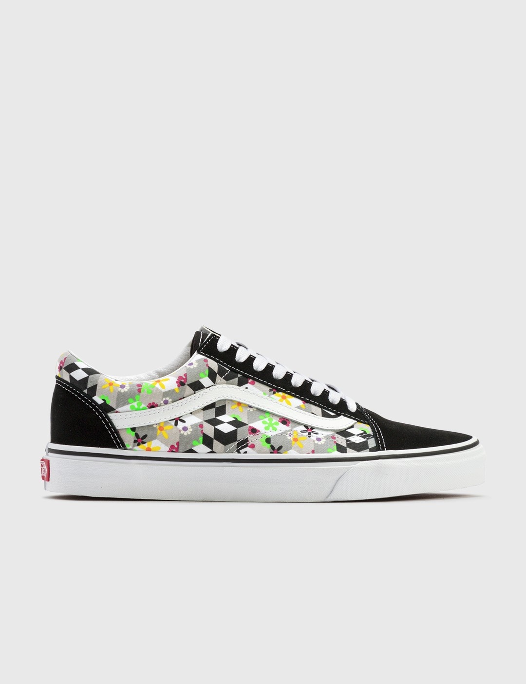 - Vans - Old Skool - Low top sneaker - Textile and suede upper - Check and flora motif - Padded collar - Lace closure - Rubber outsole - Color: (Checker Cube) Black/True White - Material: 100% Textile; 100% Rubber