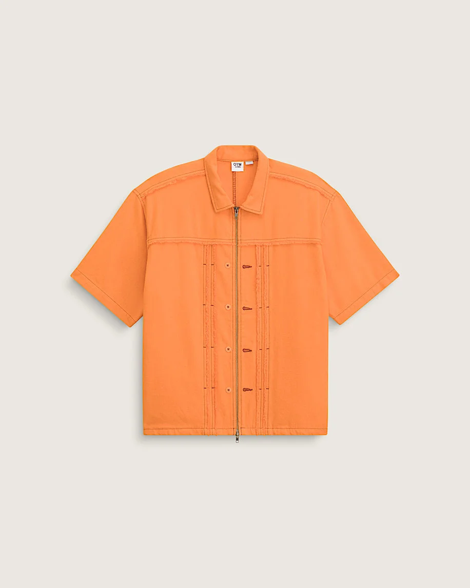 Style VN000TS515J This short-sleeve jacket brings an easygoing vibe to any outfit. The cotton construction feels soft against your skin, while frayed details and exposed seams add visual interest. A full-length zipper and button placket offer versatile styling options, whether you're hanging out or heading out. Details - Short sleeves for warm-weather comfort - Full-length zipper and button placket for versatile wear - Frayed details and exposed seams add texture - Collared neckline for a polished touch - Oversized fit for a relaxed, roomy feel - 100% cotton