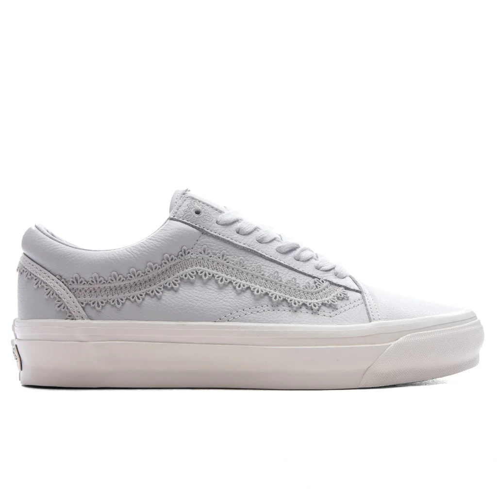 The Vans Premium Old Skool Chou Chou elevates the classic silhouette with refined detailing and modern comfort. Crafted with a full tumbled leather upper and a soft padded collar, the design features a lace-inspired embroidered sidestripe for a textural twist. A Sola Foam ADC insole provides all-day cushioning, while the glossy higher sidewall and signature waffle outsole complete the look. - Full leather upper - Soft padded collar - Lace-inspired embroidered sidestripe - Sola Foam ADC insole - Glossy higher sidewall - Signature waffle outsole - All styles listed in U.S. Men's sizes unless stated otherwise - Style no: VN000VB3BXC1