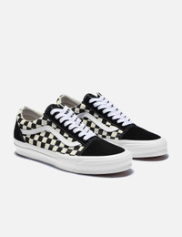 - Vans - OG Old Skool LX - Canvas upper with suede overlays - Lace-up closure - Reinforced toe cap - Waffle rubber outsole - Color: Black/Classic White Checkerboard - Material: Canvas, Suede, Rubber - See more Sneakers and Shoes