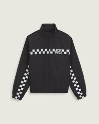 Style VN000U33BLK The Ronnie Track Jacket reworks a classic track silhouette with Vans’ signature style. Built from lightweight woven fabric, it’s easy to wear layered or on its own. Checkerboard details and a clean, full-zip finish make it the perfect piece to pair with the Ronnie Track Pants or mix into your everyday rotation. Details - Lightweight shell jacket - Full zip closure with stand collar - DWR coating helps repel light moisture - Mesh lining for breathability - Checkerboard chest stripe with Vans logo - Checkerboard sleeve panels for Vans heritage - Elastic cuffs and hem - Front welt pockets - Loose fit - 100% crinkle nylon