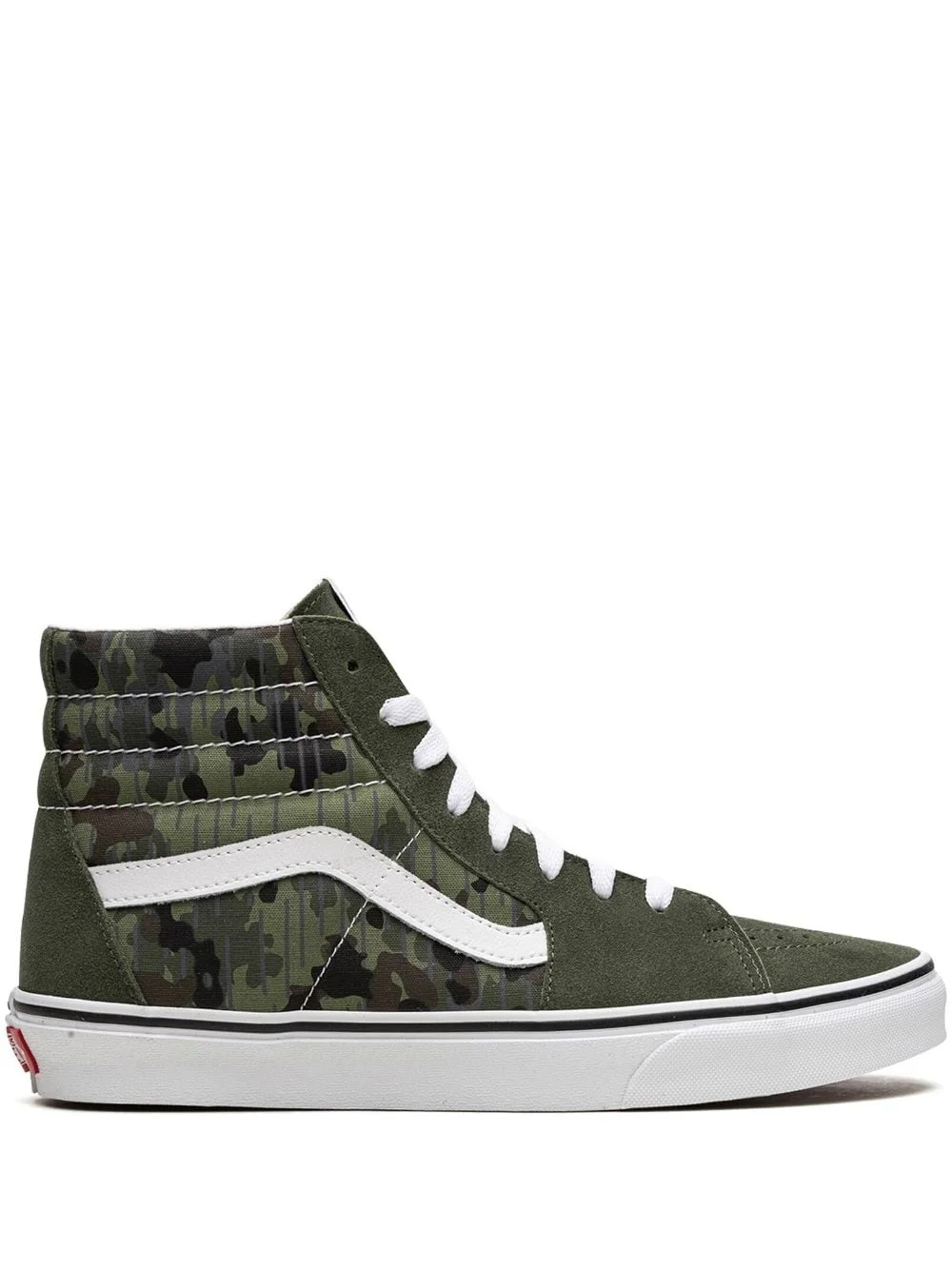 SK8-Hi "Rain Camo Green" sneakers First introduced in 1978 as the first high-top skate shoes, Vans' Sk8-Hi have been changing the sneaker game ever since. The iconic padded collar, Sidestrap logo and reinforced toe caps continue to make this a truly special silhouette, while the colourways and patterns chosen give it a fresh look season after season. For AW23, the brand presents the "Rain Camo Green" iteration, a version highlighted by the camouflage motif seen on the canvas portion of the pair. Highlights - Forest green - Canvas - Suede panelling - Camouflage pattern - Ankle-length - Signature monofilament side-stripe detail - Padded ankle - Logo patch at the tongue - Front lace-up fastening - Round toe - Logo at the sole - Flat rubber sole - Waffle sole - These styles are supplied by a premium sneaker marketplace. stocking only the most sought-after footwear, they source and curate some of the most hard to find sneakers from around the world. Imported Composition Suede 100%