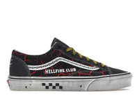 The Vans Style 36 Stranger Things is part of the Stranger Things x Vans Collection designed to celebrate the 4th season of the Netflix series. This sneaker features a red and black crackle print with contrasting laces. Dressed in black and white, the upper is embellished with throwing stars, skulls, and axes. A chain-like graphic highlights the side stripe, back heels, and lateral sides, with "Hellfire Club" imprinted on the lateral panel. The sneaker has its signature rubber waffle outsoles and supportive padded collars. This Vans shoe features a white vulcanized sole with a pre-worn look and the iconic checkerboard print. The Vans Style 36 Stranger Things was released on the 26th of August, 2022, retailing at $100. - Style VN0A3DZ3Y09 - Colorway Black/Red/Yellow - Retail Price 100 - Release Date 2022-08-26 - Featured false