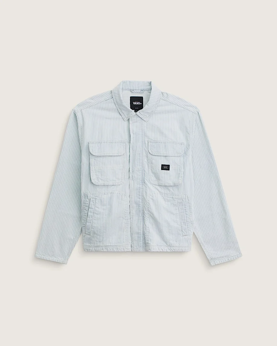 Style VN000T6NGDQ Built from woven denim with a bleached stripe finish, this jacket leans into utility with oversized pockets and a clean zip front, giving you a tough, easy layer you can throw on with anything. Details - Denim work jacket with utility-inspired detailing - Full-length front zipper for quick on and off - Dual chest pockets and front hand pockets keep small essentials close - Woven Vans logo patch on chest pocket - Standard fit for a natural and easy feel - 100% cotton