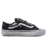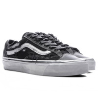 The OTW Old Skool 36 Vibram reimagines a classic silhouette through a premium lens. Crafted from distressed canvas torn and frayed details, the design features all black color palette with shades of silver and a stained midsole for an aged finish. A Vibram waffle vulcanized outsole brings traction and stability, while the Sola Foam ADC insole allows extra cushioning in every step. - Distressed canvas - Torn and frayed details - 14 oz. duck canvas full-grain leather overlays - Sola Foam ADC (All-Day Comfort) insoles - Full grain leather collar lining and padded collar - Vibram waffle vulcanized outsole - All sizes listed in U.S. Men's sizes unless stated otherwise - Style no: VN000D2GSLV1