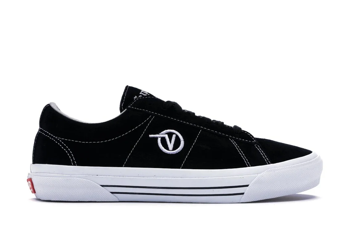 The Vans Sid Pro Supreme Black takes a retro Vans silhouette that was originally launched in the ’90s and reimagines it in collaboration with the New York–based streetwear label, Supreme. This iteration of the Vans Sid Pro silhouette features an upper crafted from black suede. Deco stitching in white courses across the upper, outlining the heel counter, collar, and eyestays. Flat black laces cross over a black suede tongue. The sock liner is white leather and matches a flying Vans logo embroidered on the side panel. The vulcanized sole unit features white side walls with black striping and a red license plate with dual branding. The gum rubber outsole is designed for grip. The standout detail on this streamlined pair of kicks is the Supreme branding on the tongue. Embroidered in white, the brand is in Old English, giving the sneaker definite panache. The Vans Sid Pro Supreme Black was released on October 4, 2018, for $110 retail. - Style VN0A3XTISJQ - Colorway Suede/Black - Retail Price 110 - Release Date 2018-10-04 - Featured false