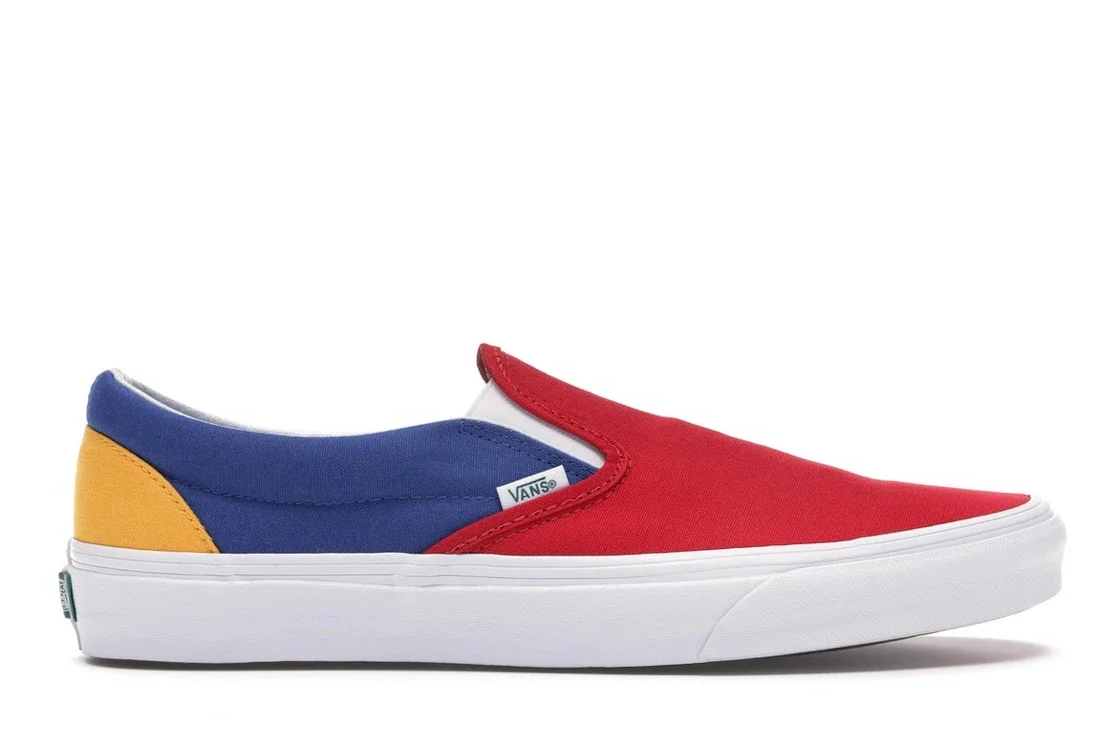 The Vans Slip On Yacht Club is a classic slip-on sneaker that features a vibrant colorway inspired by nautical flags. The upper is made of durable canvas material, while the interior is lined with a comfortable textile material. The shoe also features a padded collar for added comfort and support. The colorway includes a mix of blue, green, red, and yellow, making it a bold statement piece for any outfit. The Vans Slip On Yacht Club was released on February 1, 2018, and retailed for $65. This shoe is perfect for those who want to add a pop of color to their wardrobe and enjoy the comfort and style of a classic Vans slip-on. - Style VN0A38F7QF2 - Colorway RED/BLUE/YELLOW - Retail Price 65 - Release Date 2018-02-01 - Featured false