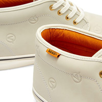 This season, Vans Vault and Brooklyn-based LQQK Studio come together for the second time, with their elevated takes on skatewear icons continuing. It’s the Chukka Boot that gets the nod this time, with the usual canvas uppers replaced with smooth white leather that’s debossed, just like their last collaboration, with circle Vs all-over. The skate-ready sole unit is untouched construction-wise, only it’s detailed with LQQK Studio’s name in subtle, off-white font. - Leather Uppers - High Foxing Tape - Vulcanised Midsole - Gum Rubber Outsole