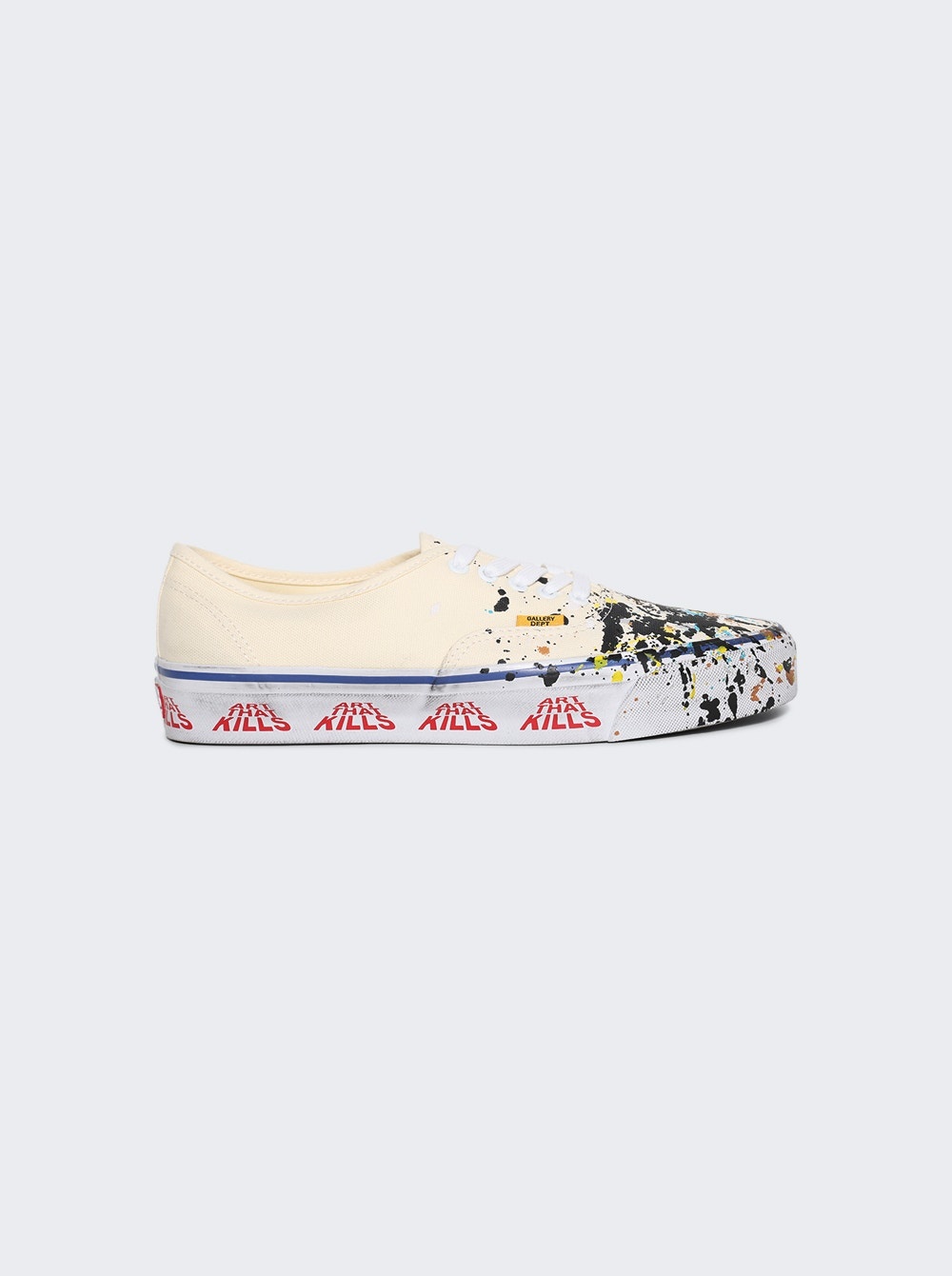 Details - Canvas upper - Lace closure - Low-top - Custom woven label - Pain splatter - Midsole graphics - Listed in US - 's sizing, fits true to size Vans joins forces with Gallery Dept. for an exclusive collaboration through OTW by Vans on the Authentic 44. Inspired by the raw energy of a painter’s studio with a vibrant splatter finish, greased sidewalls, and “Art That Kills” screen printing on the midsole. Brand Style: VN000SJKEM2 Designer/Brand: VANS