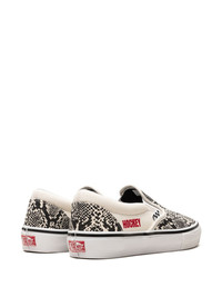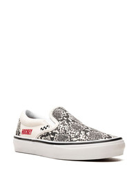 x Hockey Skate Slip-On "Snakeskin" sneakers Vans and Hockey join forces once again to launch a bold, rebellious collection, as shown in the Skate Slip-On sneakers. The snakeskin-print upper with red block letter embroidery speaks to Hockey's raw, no-holds-barred approach, which combines with proprietary Vans technology to create a skate-minded design. The POPCUSH™ cushioned footbed's impact absorption and energy return protect the foot, lessening fatigue, while the SickStick™ gum rubber compound provides maximum grip. Highlights - White/black - Snakeskin print - Embroidered motif - Logo at the sole - Round toe - Slip-on style - Rubber outsole - These styles are supplied by a premium sneaker marketplace. stocking only the most sought-after footwear, they source and curate some of the most hard to find sneakers from around the world. Imported Composition Sole: Rubber 100% Outer: Fabric 100% Lining: Fabric 100%