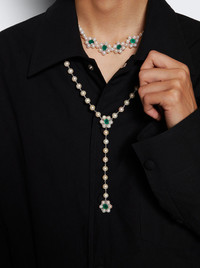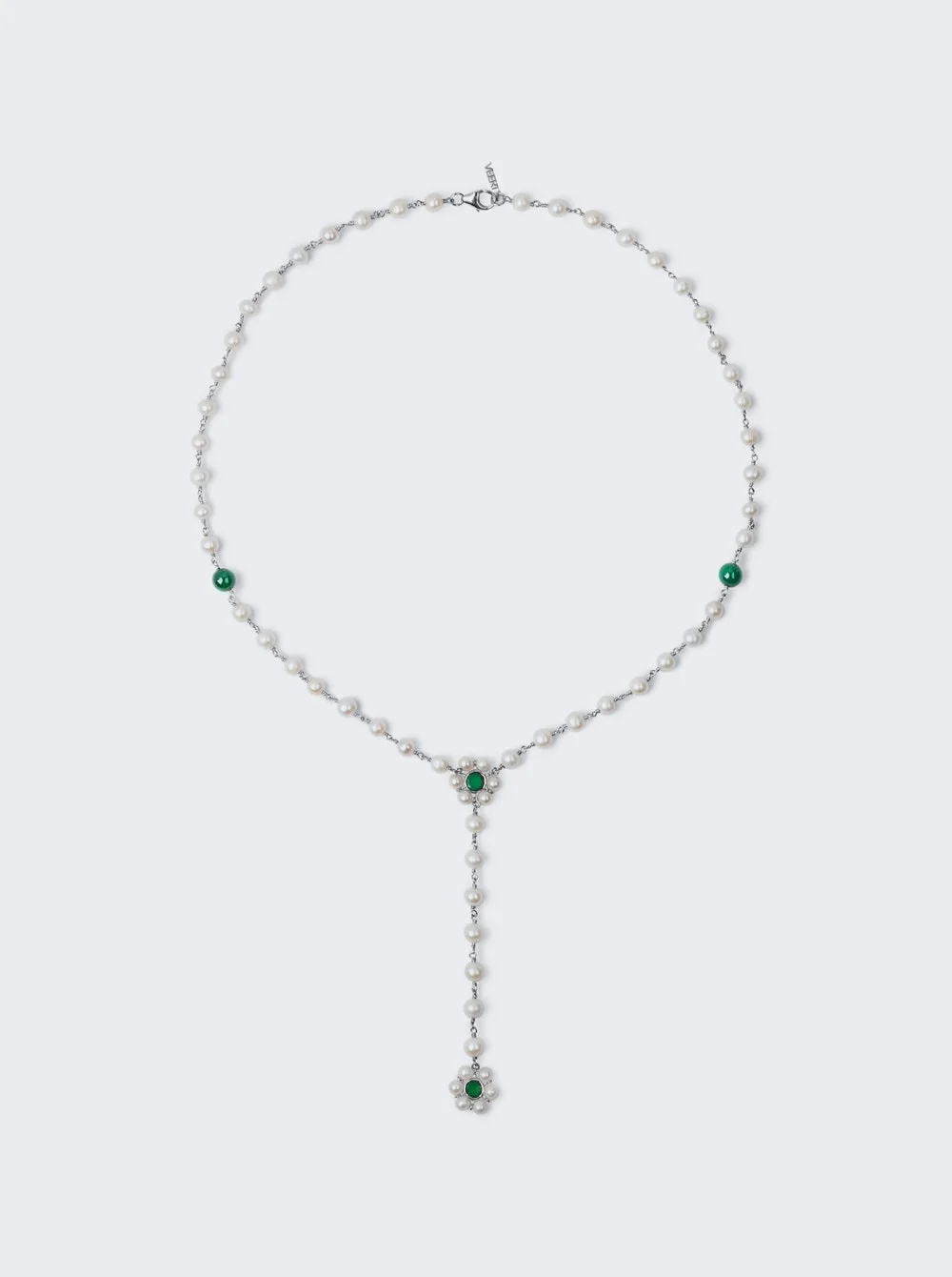 The Macro Flower Pearl Rosary Necklace 18k White Gold