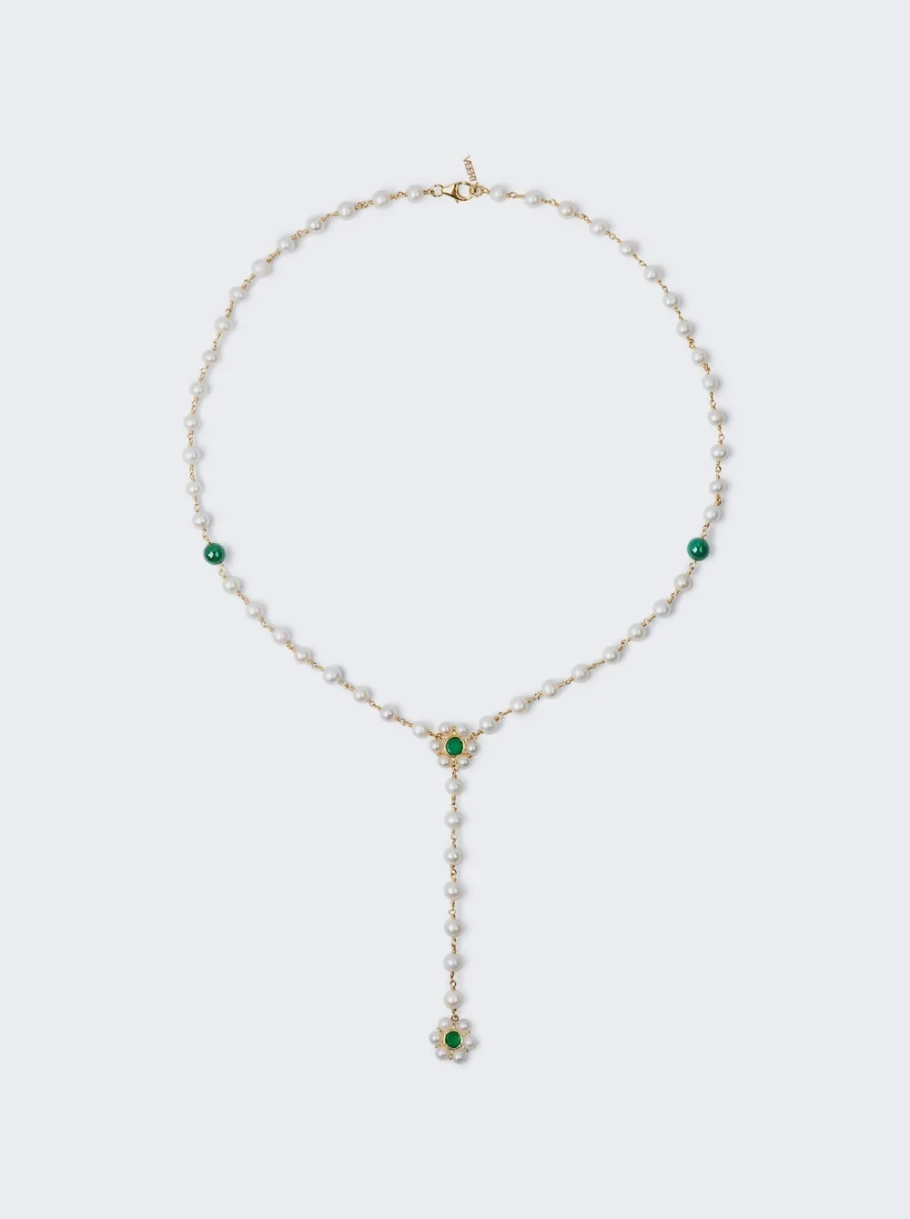 The Macro Flower Pearl Rosary Necklace Yellow Gold And Green Onyx