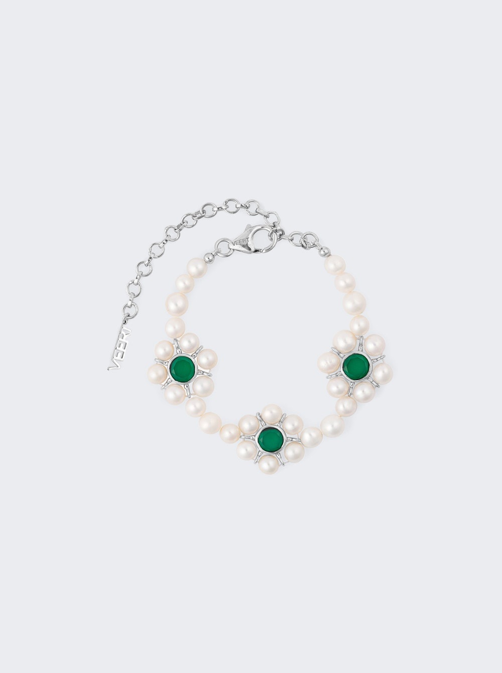 Details - Handmade 18k White Gold Vermeil - 925 Silver Base - Individually Selected Freshwater Pearls - Green Onyx Brand Style: JLG0016-WG Designer/Brand: VEERT