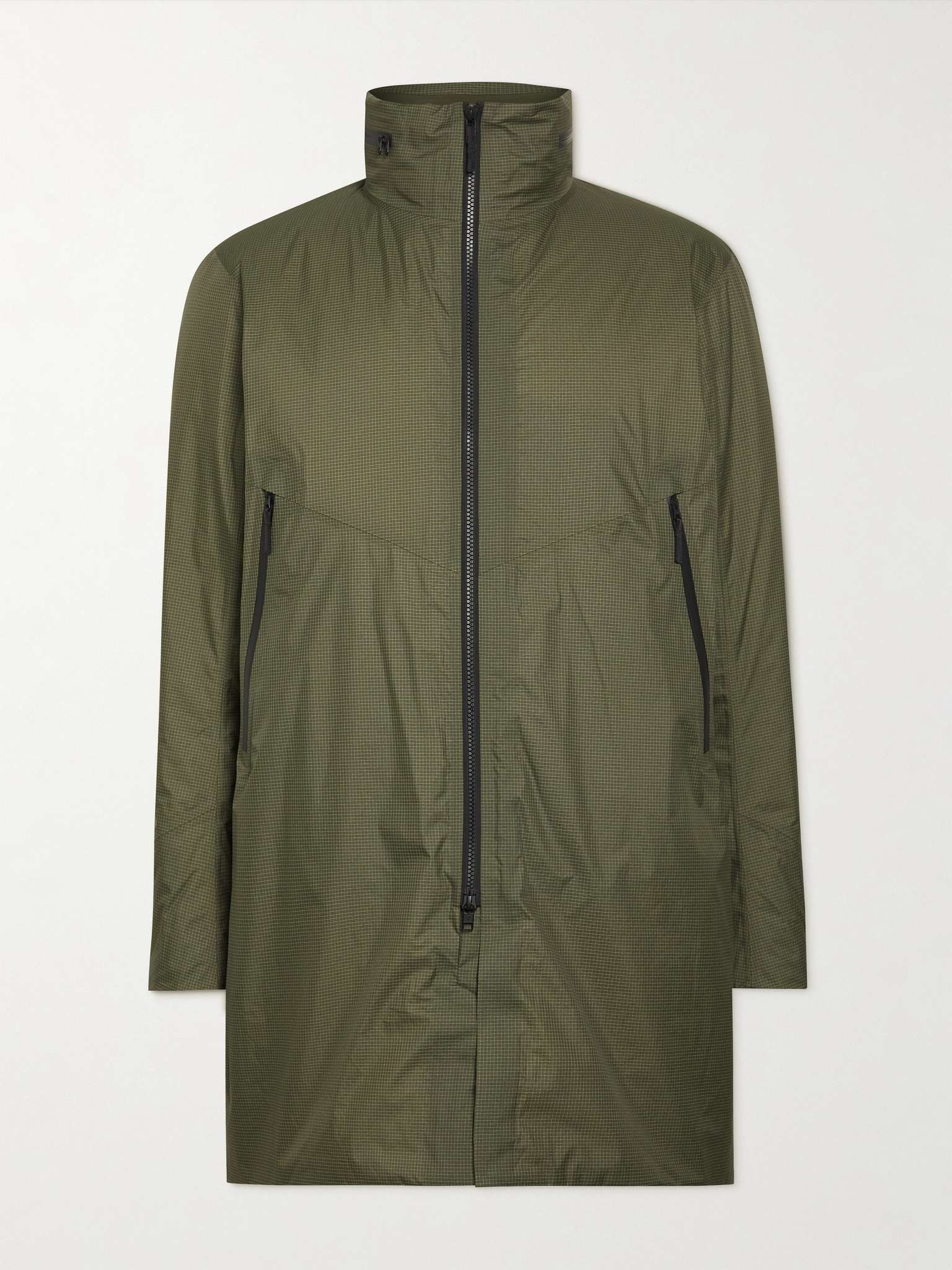 - Olive-green and white GORE-TEX ripstop - Packable zipped hood, internal elasticated cuffs, front zipped pockets, single vent, internal pockets - Two-way zip fastening - 94% nylon, 6% polyarylate with EPTFE membrane; filling: 100% polyester; lining: 100% nylon - Machine wash