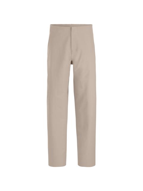 Warmth and transitional weather resistance in a clean, comfortable profile. A winterweight softshell pant made to meet the demands of modern city life. The material, a stretch nylon double weave, provides breathable comfort, light weather resistance, and the freedom of stretch. The roomy regular fit is clean, but not restrictive, and articulated patterning elevates mobility. Hand and hip pockets offer storage, and the low-profile pocketing, waist adjustment, and front snap provide performance without disrupting the lines. Full Product Features Technical features - Breathable - Wind resistant - Water repellent Construction - Durable Burly™ double weave softshell provides stretch, transitional wind and weather protection Design & Fit - Regular fit provides freedom of movement - Garment Inseam: Size 32 is 31"/78cm — Inseam varies by size Fabric treatment - FC0 DWR (Durable Water Repellent) finish repels moisture and is PFAS-free Patterning - Articulated patterning for unrestricted mobility Pocket configuration - Two patch hand pockets - Two flapped hip pockets provide accessible storage Sustainability - Contains materials that meet the bluesign® criteria - Body - bluesign® approved material - Lining - bluesign® approved material, recycled content - PFAS (Per- and polyfluoroalkyl substances) Compliant UPF rating - 40 Waist & Belt configuration - Integrated adjustable webbing belt has offset side adjusters, cinches at the back, and utilizes a low-profile Cobrax snap closure for a comfortable, secure fit Materials - Contrast: Recycled nylon/spandex plain weave with FC0 DWR, 126gsm - 95% Nylon, 5% Elastane - Body: Burly™ RecNylon Double Weave - 49% Nylon, 42% Polyester, 9% Elastane - Origin of fabric: TAIWAN - Origin of dyeing: TAIWAN - May release plastic microfibres into the environment when washing