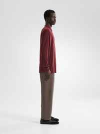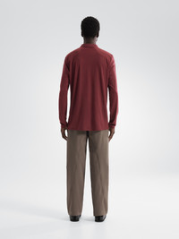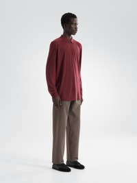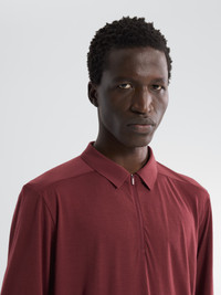 Refined polo in an exceptionally soft, breathable fine-gauge Merino jersey. Contemporary design. Natural comfort. A wardrobe essential, elevated. Ultrafine Merino wool yarns – known for softness, odour resistance, and temperature regulation – are wrapped around a nylon core for enhanced durability. The long sleeves carry it into the cooler seasons, and a four-way stretch polyester reinforces the shoulders. Front zipper has a chin guard for comfort, micro-serged seams streamline the profile, and the roomier regular fit provides airflow and mobility. Full Product Features Technical features - Breathable - Natural odour resistance - Thermoregulatory Collar configuration - Standard collar Construction - Micro-serged seams - Ultra fine Merino wool is known for soft comfort, natural temperature regulation and odour resistance - Merino fibres are wrapped around a nylon core for added durability Cuff & Sleeves configuration - Long sleeves Design & Fit - Regular fit provides freedom of movement Hem configuration - Cover-stitched hem for a clean finish Patterning - Articulated patterning for unrestricted mobility Sustainability - Wool is sourced from humanely raised, non-mulesed sheep - PFAS (Per- and polyfluoroalkyl substances) Compliant Materials - Merino / Nylon core spun jersey 16.5mn: 87% Wool, 13% Nylon - RWS Wool - Origin of fabric: THAILAND - Origin of dyeing: THAILAND