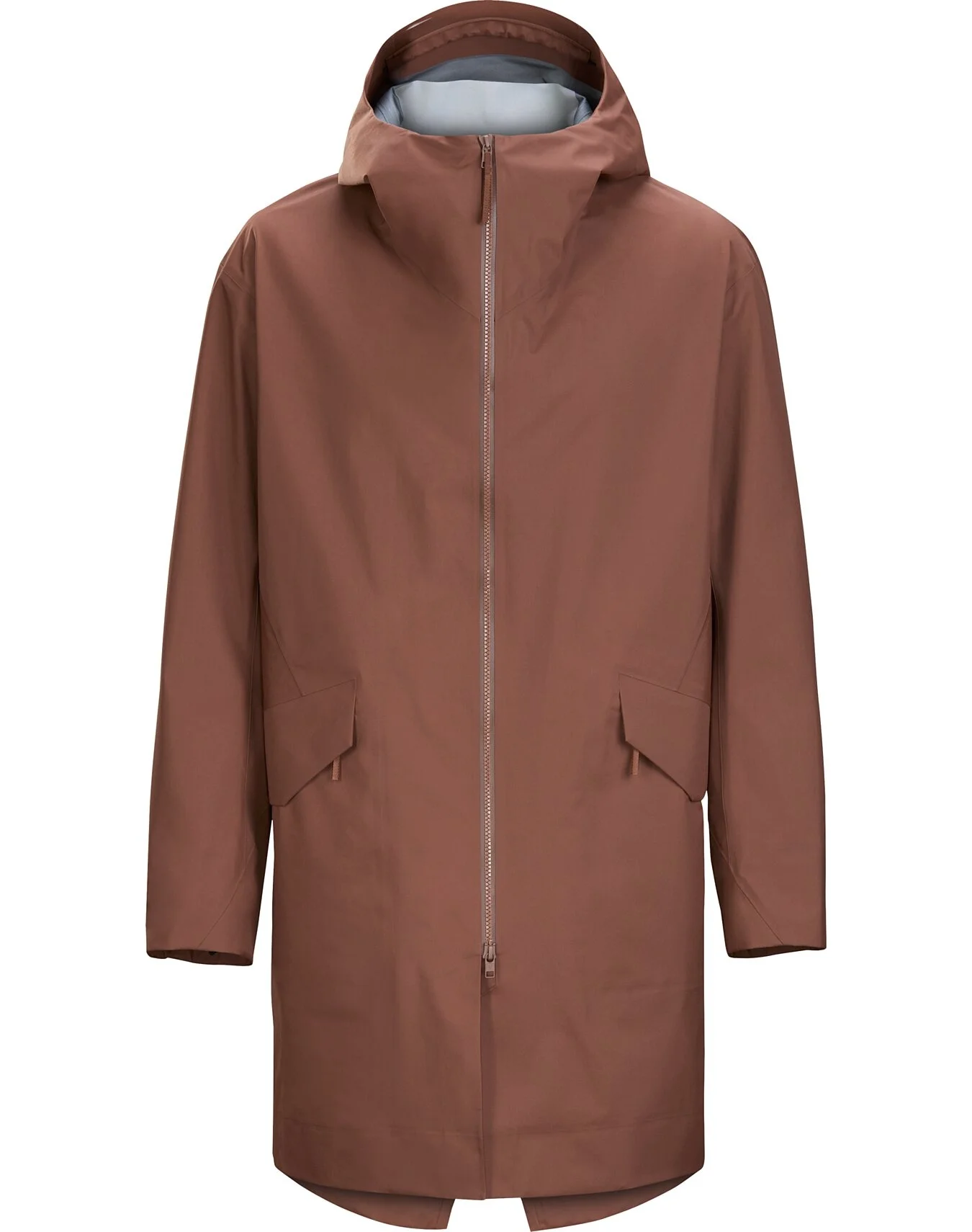 Relaxed-fit waterproof coat featured for the city. The Monitor is an everyday, relaxed-fit shell, featured to keep you dry as you move through city storms. With staple design details like our iconic fishtail hem and a tall collar with a DropHood™ design, it’s essential and elevated weather protection. What's been updated: Updated with a FC0 DWR finish and PFAS-free GORE-TEX ePE laminate for a lower footprint. This product is free of intentionally added PFAS. The new ePE membrane technology is lighter and thinner, but just as strong and durable as the materials we used before. You may notice the face fabric “wetting out” slightly faster in products with ePE membranes, but rest assured this does not affect the waterproofing of the membrane itself. If you notice the fabric wetting out faster than you’d like, simply wash the jacket and dry it to remove the oil contamination and bring the DWR back to its full power. Full Product Features Technical Features - Waterproof - Windproof - Breathable - Durable Construction - Micro-seam allowance (1.6 mm) reduces bulk and weight - PFAS-free GORE-TEX ePE with a recycled face delivers complete waterproof, windproof, breathable protection - Recycled GORE C-KNIT™ backer is quiet, soft next-to-skin, and highly breathable Cuff & Sleeves Configuration - Gusseted sleeve cuff with Cobrax snap for secure closure with a clean finish Design & Fit - Garment Centre Back Length: Size M is 33"/84cm - Varies by size Fabric Treatment - FC0 DWR (Durable Water Repellent) finish repels moisture and is PFAS-free Hem Configuration - Fishtail hem shaping Hood Configuration - Adjustable DropHood™ provides full coverage and has an ergonomically designed integrated collar for added protection Patterning - Articulated patterning for unrestricted mobility Pocket Configuration - Two high-volume hand pockets with WaterTight™ zippers - Interior die-cut pocket Sustainability - Contains materials that meet the bluesign® criteria - Shell - bluesign® approved material, dope dyed backer, recycled content - Lining - bluesign® approved material, dope dyed, recycled content - PFAS (Per- and polyfluoroalkyl substances) Compliant Zippers & Fly Configuration - Two-way front zipper Materials - Lining: Pocket Liner TOF 3L XCR - 100% Polyester - Body: 3L 80d GORE-TEX ePE with C-KNIT™ backer technology, plain weave recycled nylon, Beam Dyed, FC0 DWR - 100% Nylon with ePE and PU Membrane - Origin of fabric: CHINA - Origin of dying: CHINA - May release plastic microfibres into the environment when washing