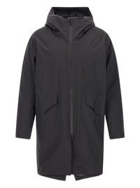 Monitor hooded coat Highlights - Black - Padded - Hood - Front zip closure - Asymmetrical hem - Fishtail silhouette Imported Composition Outer: Nylon 100% Lining: Goose Down 100% Washing instructions Read Manufacturer Guidelines