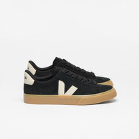 A new basic sneaker with a larger sole and a sharper design. Upper: Suede Panels: Suede and ChromeFree leather Logo V: Amazonian rubber (26%), mineral silica (22%), synthetic rubber (21%) and others (31%) Insole: Amazonian rubber (11%), bio-based E.V.A.* (53%, including 42% sugarcane), recycled E.V.A.* (11%), organic cotton (12%) and others (13%) Outsole: Amazonian rubber (40%), mineral silica (23%), recycled rubber (10%), synthetic rubber (11%) and others (16%) Welt: Synthetic rubber (40%), mineral silica (22%) and others (38%) Lining: Recycled polyester (100%) Laces: Recycled polyester (100%) Made in Brazil Suede is the underside of leather, sanded to give it a soft and smooth feel. It comes from farms in the Rio Grande do Sul region and is tanned in Brazil without harmful or prohibited chemicals. VEJA uses dyes that meet regulations and prioritizes responsible water use during the tanning process. This suede is then coated with PFC-free water-repellent oils to shield the sneakers from light rain.