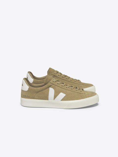 Upper: Suede Panels: Suede and ChromeFree leather Logo V: Amazonian rubber (26%), mineral silica (22%), synthetic rubber (21%) and others (31%) Insole: Amazonian rubber (11%), bio-based E.V.A. (53%, including 42% sugarcane), recycled E.V.A. (11%), organic cotton (12%) and others (13%) Outsole: Amazonian rubber (40%), mineral silica (23%), recycled rubber (10%), synthetic rubber (11%) and others (16%) Welt: Synthetic rubber (40%), mineral silica (22%) and others (38%) Lining: Recycled polyester (100%) Laces: Organic cotton (100%) Made in Brazil Suede is the underside of leather, sanded to give it a soft and smooth feel. It comes from farms in the Rio Grande do Sul region and is tanned in Brazil without harmful or prohibited chemicals. VEJA uses dyes that meet regulations and prioritizes responsible water use during the tanning process. This suede is then coated with PFC-free water-repellent oils to shield the sneakers from light rain.
