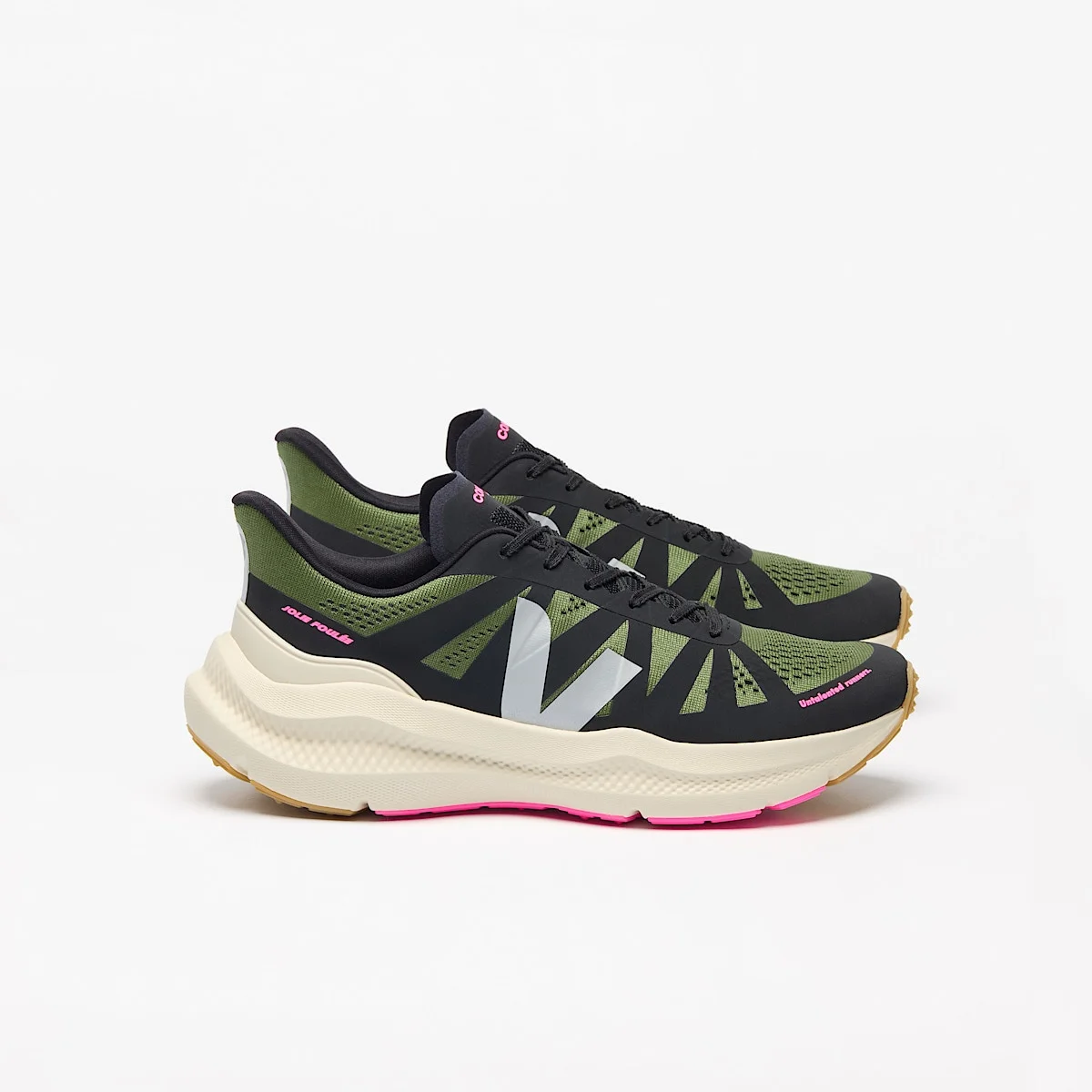VEJA exclusive - VEJA and Jolie Foulee are back with a special edition of the Condor 3 Advanced. This model provides more versatility and durability, making it perfect for all kinds of runs. Weight: 276 g / 10 oz Drop: 8 mm Stride: Neutral Surface: Road Weight: 276 g / 10 oz Drop: 8 mm Stride: Neutral Surface: Road Upper: Ketten Engineered-Mesh (100% recycled polyester) Panels: T.P.U. Insole: Bio-based E.V.A. (68%, including 54% sugarcane), recycled polyester (16%) and others (16%) Dynamic-Plate: Bio-based rigid E.V.A. (95%, including 76% sugar cane) and others (5%) Midsole: Expanded Rubber Technology - Amazonian rubber (16%), E.V.A. bio-sourced (34%, including 27% sugar cane), pigments (13%) and others (37%) Outsole: Amazonian rubber (25%), mineral silica (22%), synthetic rubber (25%) and others (28%) Lining: Recycled polyester (100%) Laces: Recycled polyester (100%) Made in Brazil This knitting technique “Engineered-Mesh” offers a tailor-made placement of breathable and supportive areas. The mesh alternates between tight stitches and spaced-out stitches.
