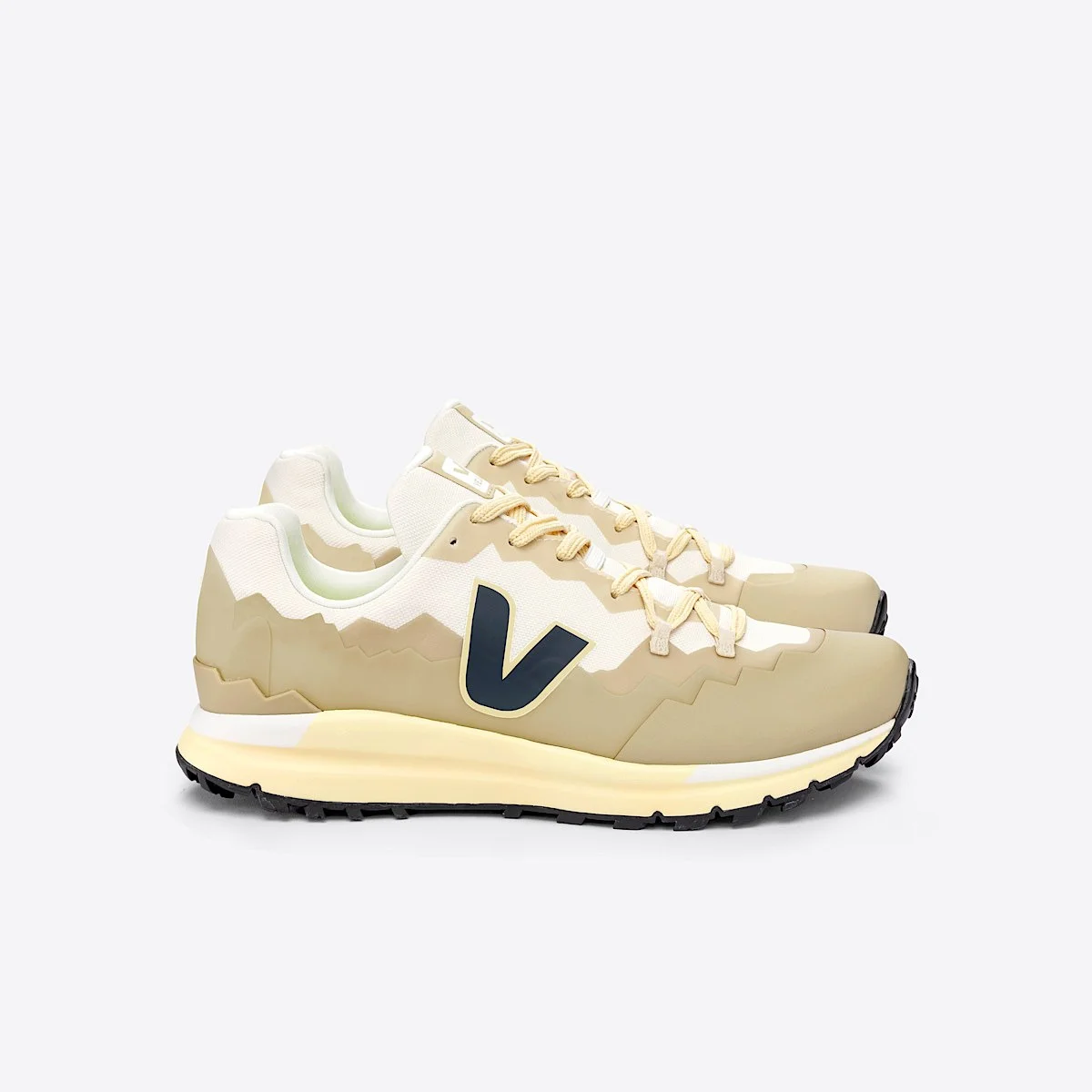VEJA has created a shoe designed for trekking and hiking: The Fitz Roy is a technical boot with a solid, stable sole thanks to multidirectional crampons and a rock plate. Weight: 0.7 Drop: 6 Stride: Neutral Surface: Technical Weight: 0.7 Drop: 6 Stride: Neutral Surface: Technical Upper: Recycled polyester (100%) Panels: T.P.U. Logo V: Pebax® Rnew® (including 62% ricinus oil) Insole: Amazonian rubber (12%), bio-based E.V.A.* (53%, including 42% sugarcane), organic cotton (23%) and others (12%) Midsole: E.V.A.* bio-sourced (65%, including 52% sugar cane) and others (35%) Outsole: Amazonian rubber (31%), mineral silica (28%), synthetic rubber (23%) and others (18%) Lining: Recycled polyester (100%) Laces: Recycled polyester (100%) Heel support insert: Pebax® Rnew® (including 62% ricinus oil) L-Foam: Natural latex (50%) and synthetic latex (50%) Made in Brazil Trek-Shell is a tightly woven, highly resistant textile made from recycled polyester. Inspired by outdoor fabrics, it provides reinforced structure, flexibility, and adaptability. The fabric is treated with a durable, PFC-free water repellent, keeping your feet protected from light rain or wet surfaces. This material is ideal for outdoor activities.