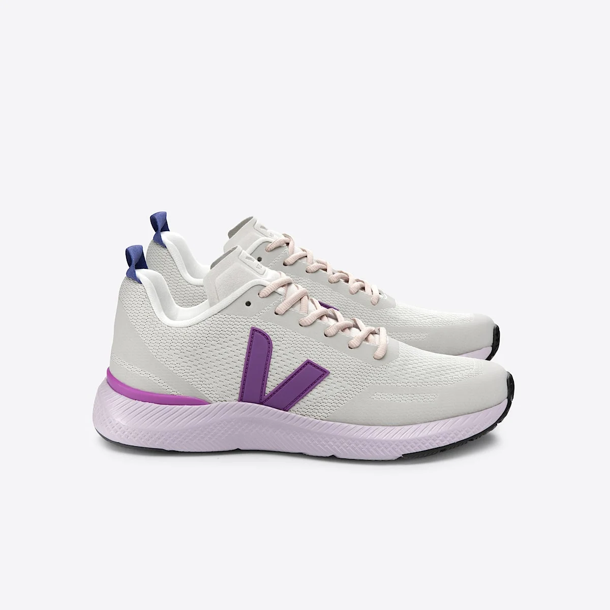 VEJA creates its first training shoe: the Impala, the lightest pair that VEJA has developed. Weight: 245 g / 8,6 oz Drop: 6 mm Stride: Neutral Surface: Indoor / Gym Weight: 245 g / 8,6 oz Drop: 6 mm Stride: Neutral Surface: Indoor / Gym Upper: Engineered-Mesh (100% recycled polyester) Panels: T.P.U. Logo V: T.P.U. and Pebax® Rnew® (including 62% ricinus oil) Heel support insert: Pebax® Rnew® (including 62% ricinus oil) Insole: Amazonian rubber (15%), E.V.A. bio-sourced (75%, including 42% sugar cane) and others (10%) Midsole: E.V.A. bio-sourced (61%, including 49% sugar cane) and others (39%) Outsole: Amazonian rubber (35%), mineral silica (23%), synthetic rubber (29%) and others (13%) Lining: Recycled polyester (100%) Laces: Recycled polyester (100%) L-Foam: Natural latex (50%) and synthetic latex (50%) Made in Brazil This knitting technique “Engineered-Mesh” offers a tailor-made placement of breathable and supportive areas. The mesh alternates between tight stitches and spaced-out stitches.