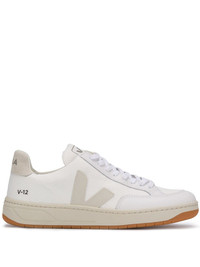 mesh sneakers White leather mesh sneakers from VEJA featuring a round toe, a lace-up front fastening, branded heel counter, a logo patch to the sides and a rubber sole. POSITIVELY CONSCIOUS: VEJA scores 4 out 5 by independent ethical brand rating agency Good On You. It uses a high proportion of eco-friendly materials, has a great labour rating and a robust Code of Conduct for its suppliers. It ensures a large proportion of its suppliers pay a living wage. Imported Composition Outer: Polyester 100%, Calf Leather 100% Lining: Polyester 100% Sole: Rubber 100% SIZE & FIT Measurement Sole height 0.98 in(2.5 cm) HEEL 1.37 in(3.5 cm) Inside Sole 10.23 in(26 cm)