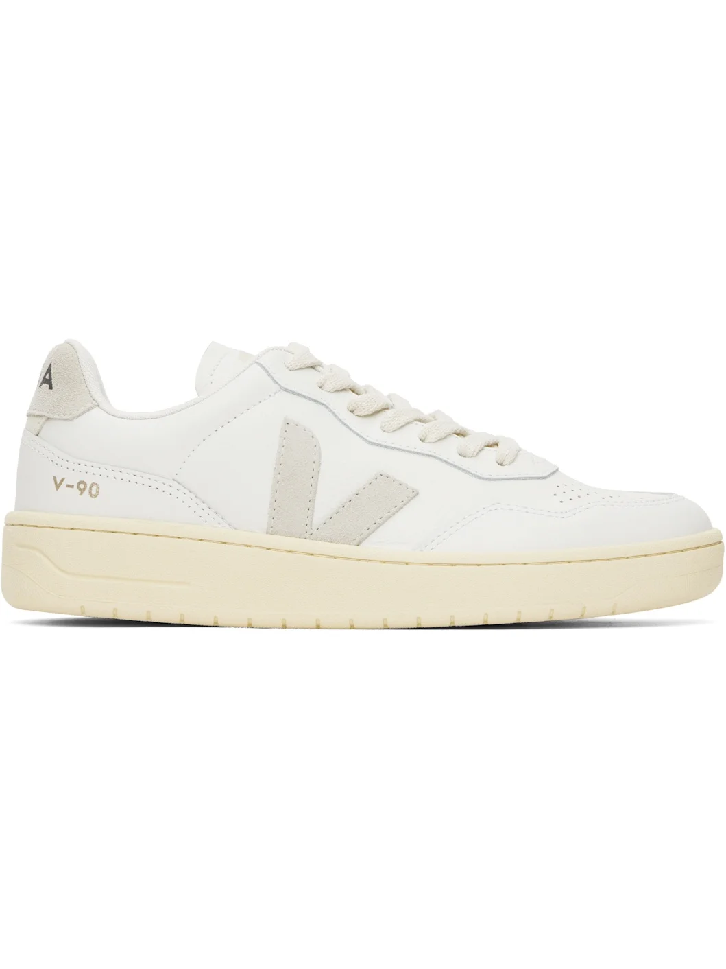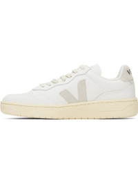 Low-top grained organic leather sneakers in white. · Perforations at toe · Lace-up closure · Logo printed at padded tongue · Padded collar · Suede logo applique at sides · Text printed at outer side · Logo printed at suede heel tab · Recycled polyester jersey lining · Treaded rubber sole Supplier color: Extra-white/Natural Upper: organic leather. Sole: rubber. Made in Brazil 251610M237044