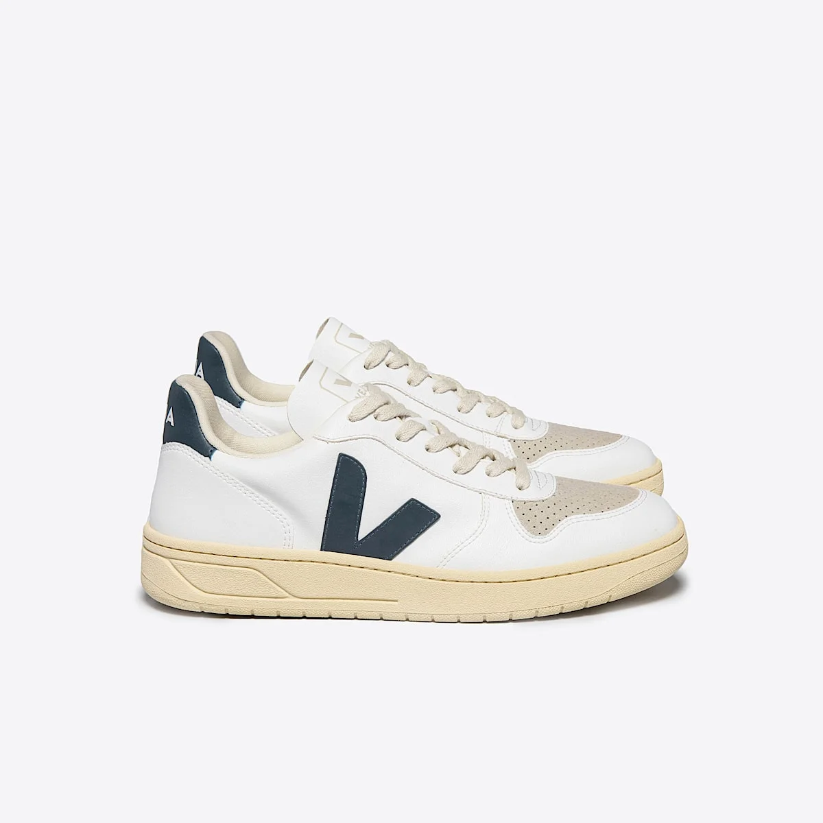 The V-10 stands for 10 years of love, designed for VEJA's 10th anniversary. Upper: C.W.L. Panels: C.W.L. Logo V: Amazonian rubber (26%), silica mineral (31%), synthetic rubber (21%) and others (22%) Insole: Amazonian rubber (11%), bio-based E.V.A.* (53%, including 42% sugarcane), recycled E.V.A. (11%), organic cotton (12%) and others (13%) Lining: Recycled polyester (100%) Laces: Organic cotton (100%) Made in Brazil The bovine ChromeFree leather is smooth and light. Coming from farms located in the south of Brazil (Rio Grande do Sul), it undergoes an innovative tanning process where no chrome, heavy metals or dangerous acids are involved. By simplifying the tanning process, the use of chemicals and energy is limited, the use of water is reduced by about 40% and the use of salt by 80%. After tanning, the water is recyclable.