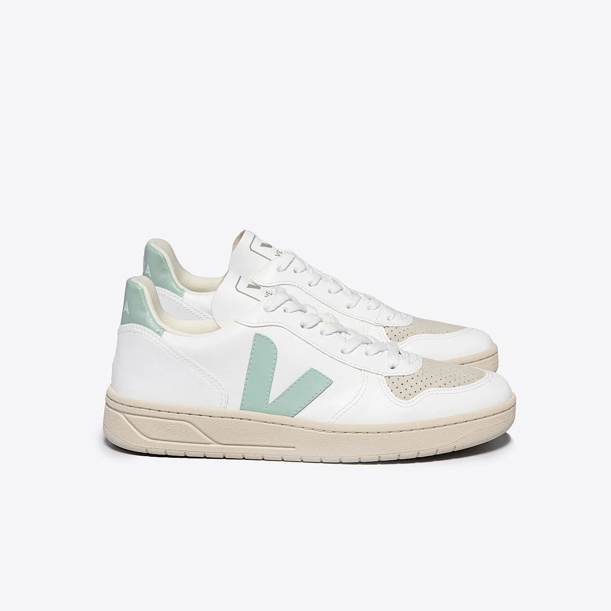 The V-10 stands for 10 years of love, designed for VEJA's 10th anniversary. Upper: C.W.L. Panels: C.W.L. Logo V: Amazonian rubber (26%), silica mineral (31%), synthetic rubber (21%) and others (22%) Insole: Amazonian rubber (11%), bio-based E.V.A.* (53%, including 42% sugarcane), recycled E.V.A. (11%), organic cotton (12%) and others (13%) Outsole: Amazonian rubber (40%), mineral silica (23%), recycled rubber (10%), synthetic rubber (11%) and others (16%) Lining: Recycled polyester (100%) Laces: Organic cotton (100%) Made in Brazil The bovine ChromeFree leather is smooth and light. Coming from farms located in the south of Brazil (Rio Grande do Sul), it undergoes an innovative tanning process where no chrome, heavy metals or dangerous acids are involved. By simplifying the tanning process, the use of chemicals and energy is limited, the use of water is reduced by about 40% and the use of salt by 80%. After tanning, the water is recyclable.