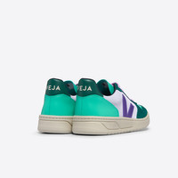 The V-10 stands for 10 years of love, designed for VEJA's 10th anniversary. Upper: Suede Panels: Suede Logo V: Amazonian rubber (26%), mineral silica (22%), synthetic rubber (21%) and others (31%) Insole: Amazonian rubber (11%), bio-based E.V.A.* (53%, including 42% sugarcane), recycled E.V.A.* (11%), organic cotton (12%) and others (13%) Outsole: Amazonian rubber (40%), mineral silica (23%), recycled rubber (10%), synthetic rubber (11%) and others (16%) Lining: Recycled polyester (100%) Laces: Organic cotton (100%) Made in Brazil Suede is the underside of leather, sanded to give it a soft and smooth feel. It comes from farms in the Rio Grande do Sul region and is tanned in Brazil without harmful or prohibited chemicals. VEJA uses dyes that meet regulations and prioritizes responsible water use during the tanning process. This suede is then coated with PFC-free water-repellent oils to shield the sneakers from light rain.