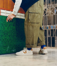 Upper:O.T. Leather Panels: Suede Logo V:Suede Insole:Amazonian rubber (11%), bio-based E.V.A.* (42% sugar cane), recycled E.V.A. (11%), organic cotton (12%) and others (14%) Outsole:Amazonian rubber (40%), silica (23%), recycled rubber (10%), synthetic rubber (11%) and others (16%) Lining:Tech (100% recycled polyester) Laces:Organic cotton (100%) Made in Brazil O.T. (Organic Traced) leather comes from 100% organic certified farms in Uruguay, a country known for its culture of animal husbandry and the quality of the leather. It is the softest and finest of our leathers coming from bovines. This type of leather undergoes a mechanical beating process makes it fine and bendable. Tanned in Brazil using less dyes than our conventional bovine leather. VEJA uses conventional dyes that comply with regulations. Special attention is paid to water during the tanning process. *Ethylene vinyl acetate