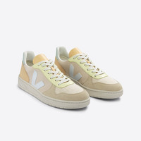 The V-10 stands for 10 years of love, designed for VEJA's 10th anniversary. Upper: Suede Panels: Leather and Suede Insole: Amazonian rubber (10%), bio-based E.V.A. (40%, including 32% sugarcane), recycled E.V.A. (12%), organic cotton (14%) and others (24%) Outsole: Amazonian rubber (40%), mineral silica (23%), recycled rubber (10%), synthetic rubber (11%) and others (16%) Lining: Recycled polyester (100%) Laces: Organic cotton (100%) Made in Brazil Suede is the underside of leather, sanded to give it a soft and smooth feel. It comes from farms in the Rio Grande do Sul region and is tanned in Brazil without harmful or prohibited chemicals. VEJA uses dyes that meet regulations and prioritizes responsible water use during the tanning process. This suede is then coated with PFC-free water-repellent oils to shield the sneakers from light rain.