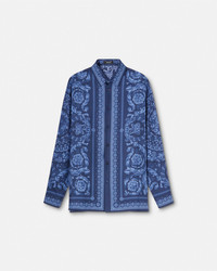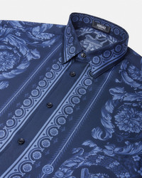 DETAILS A regular fit long-sleeved silk twill shirt with a notched collar and all-over tonal Barocco print. - Barocco print - Short sleeves - Notched collar - Front button closure - Outer composition: 100% Silk Item: 1012141-1A09783_5U960 SIZE & FIT - The model is 5'8" tall and wears size 38 IT