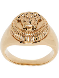 Signet ring in gold tone. - Signature Medusa at face - Logo engraved at inner band Supplier color: Light gold