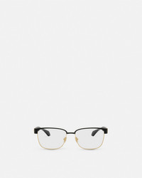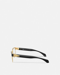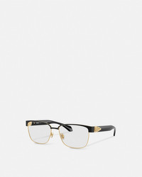 DETAILS These softsquared optical frames feature a matte Medusa and Vshaped hardware on contrasting temples and adjustable nose pads - Medusa hardware - Frame color: Gold-tone - Temple color: Black - Lens color: Transparent - Frame: Metal - Temple: Injected Item: O1306-O100255_ONUL SIZE & FIT - Lens: W2.2" x H1.6" / W55 x H40.5 mm - Bridge: 0.6" / 16 mm - Temple: 5.5" / 140 mm