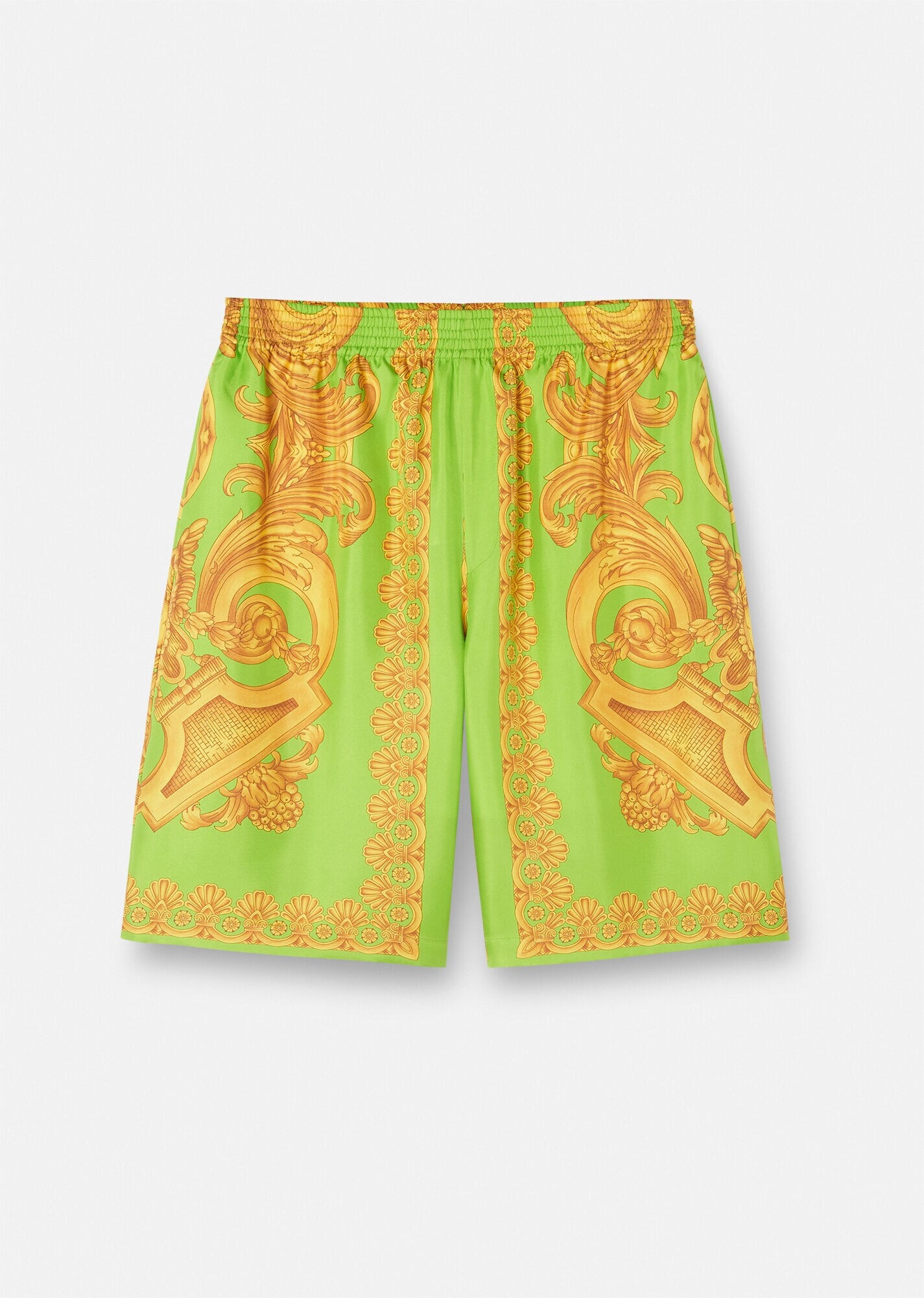 These knee-length shorts are made from silk twill and feature a loose fit with a back pocket and all-over Barocco 660 print. DETAILS & CARE - Barocco 660 print - Back pocket - Side pockets - Elasticized waistband - Outer composition: 100% Silk - Lining: 100% Cupro - Do not wash - Do not bleach - Do not tumble dry - Cool iron - Delicate dry clean SIZE & FIT - All sizes fit Italian standards
