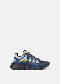 The Trigreca sneakers bring innovation to the brand's ever-evolving aesthetic. Featuring a Barocco 660 print, three-dimensional Greca executions on the soles offer an impactful landing with the "Greca Cushioning System." In a subtle nod to Versace's home city, the uppers have a discrete print of Milan's coordinates. DETAILS & CARE - Barocco 660 print - Low top - Lace up - Round toe - Trigreca print on tongue and heel counter - Printed coordinates of Milan - Top-stitch detailing - Rubber Greca soles - Outer composition: 100% Calf leather - Lining 1: 100% Polyester - Lining 2: 100% Calf leather - Trim 1: 100% Polyester - Trim 2: 100% Calf leather - Trim 3: 90% Polyester, 10% Elastane - Sole: 100% Rubber SIZE & FIT - All sizes fit Italian standards - Fits true to size, take your normal size