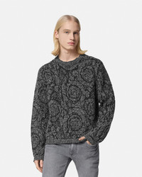 DETAILS A chunky cable-knit sweater in a cotton blend featuring a Barocco pattern. - Barocco pattern - Long sleeves - Ribbed crewneck, hem, and cuffs - Outer composition: 66% Cotton, 27% Nylon, 6% Polyester, 1% Other fibers Item: 1016053-1A11189_1B000 SIZE & FIT - The model is 6'1" / 1.87 m tall and wears size 48 IT