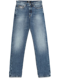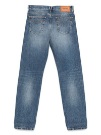 Barocco-detail jeans Highlights - Indigo blue - Front button and zip fastening - Belt loops - Classic five pockets - Whiskering effect at the thighs Imported Composition Outer: Cotton 100%, Calf Leather 100% Lining: Polyester 65%, Cotton 35%