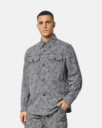 DETAILS A button-down overshirt in cotton gabardine featuring a jacquard Barocco pattern and enamel Medusa buttons. - Barocco pattern - Medusa hardware - Long sleeves - Pointed collar - Front button closure - Chest patch pockets - Buttoned cuffs - Outer composition: 100% Cotton Item: 1008738-1A11379_2BO70 SIZE & FIT - The model is 6'1" / 1.87 m tall and wears size 48 IT