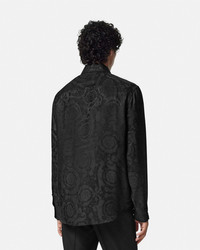 DETAILS This longsleeved regularfit shirt is crafted from silkblend and features a tonal Barocco jacquard pattern and a Versace tailoring label on the sleeve - Barocco pattern - Tailoring label - Long sleeves - Pointed collar - Front button closure - Buttoned cuffs - Outer composition: 67% Viscose, 33% Silk Item: 1017398-1A10070_1B000 SIZE & FIT - The model is 6'1" / 1.87 m tall and wears size 48 IT