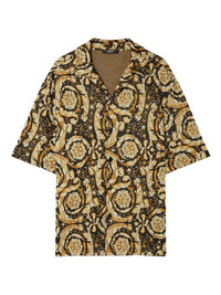 Barocco jacquard shirt Highlights - Gold-tone - Monogram jacquard - Front button fastening - Short sleeves Imported Composition Viscose 66%, Nylon 32%, Elastane 2% Washing instructions Read Manufacturer Guidelines