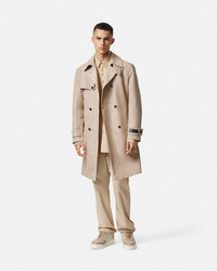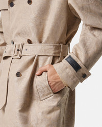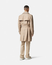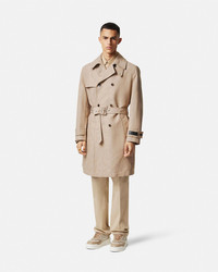 DETAILS This long gabardine trench coat features an all-over tonal Barocco jacquard motif. The unlined double-breasted style has a belted waist and notched collar. A leather logo patch details the sleeve. - Barocco pattern - Long sleeves - Notched collar - Storm flaps - Side pockets - Buttoned sleeve strap - Outer composition: 100% Cotton - Lining 1: 100% Cupro - Lining 2: 100% Cotton - Embroidery: 75% Viscose, 25% Polyester - Trim: 100% Calf leather Item: 1013294-1A09781_1KD40 SIZE & FIT - The model is 6'2" tall and wears a size 48 IT